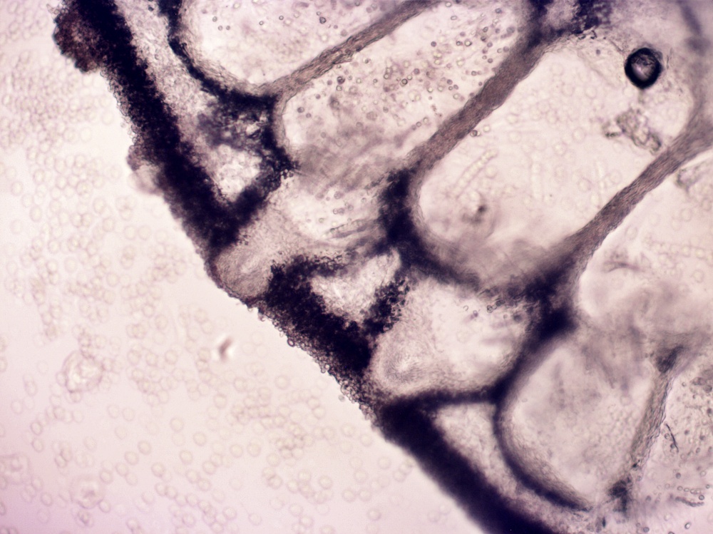 ・子嚢胞子は大きな胞子(楕円形。5×4μm)と小さな胞子(類球形。3μm)の2型がある。それぞれ8個、4個ずつのグループになり、子嚢内に16個できる。